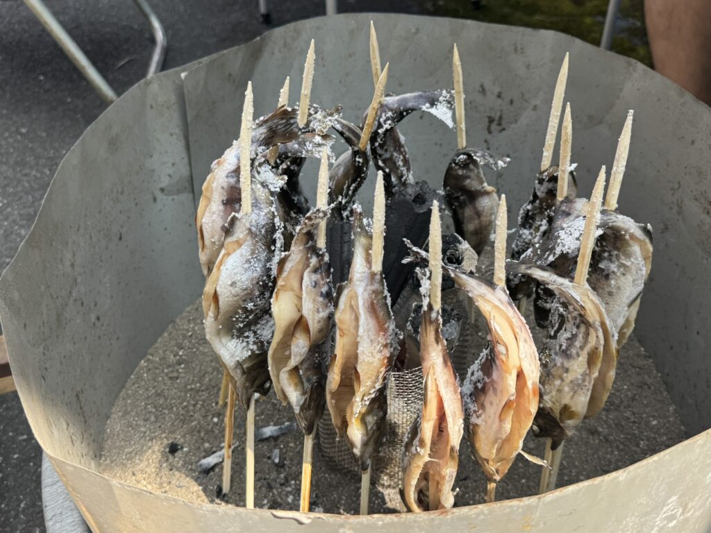 地元の名店「鹿野精肉店」さんの特選和牛をはじめ、ホタテ・エビの海鮮、焼き鳥に、「社員提供の鮎の塩焼き」まで豪華ラインナップ!